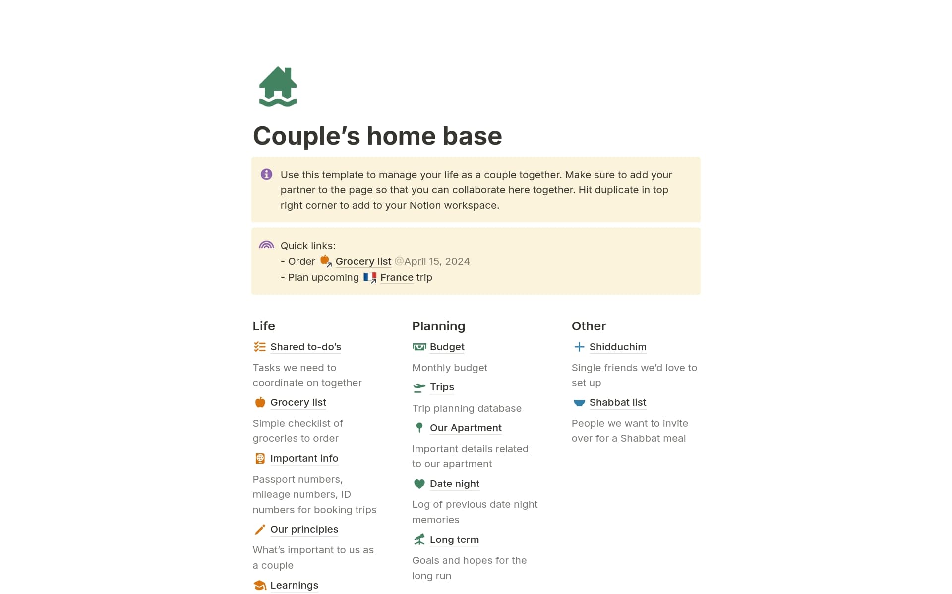 A template preview for